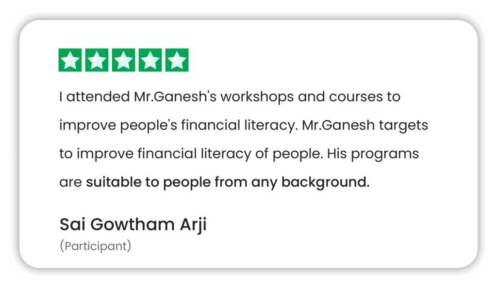 Ganesh Komma, who is one of the most reputed and successful stock market investor will be hosting this Financial Freedom Masterclass. With his 16+ years of experience in the Finance and Banking sectors, he has known all the untold secrets that the rich people follow and what small investors don’t follow & fail miserably. He is also an Amazon Best Selling Author for his famous book – Gamifying the whole experience of Money. He has also contributed in the book: Banking Industry and Non Performing Assets (NPAs).